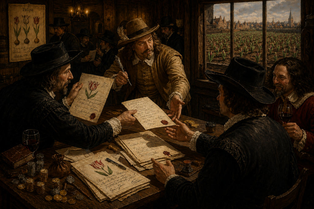 튤립 알뿌리는 일 년 중 실물 거래 기간이 매우 짧았기에, 상인들은 ‘내년에 나올 알뿌리’를 미리 계약하는 방식을 고안했습니다. 이것이 현대 선물거래의 시초가 된 ‘바람 장사(Windhandel)’입니다.